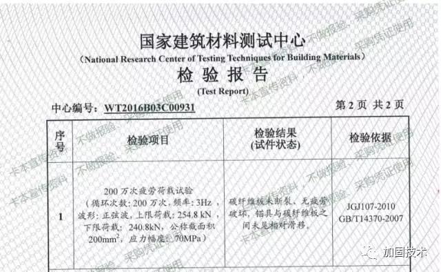 首先,選擇通過耐疲勞應力作用能力檢測的結構膠??ū绢A應力碳板配套碳板粘接劑選擇通過安全性鑒定的卡本浸漬膠,其耐疲勞荷載作用能力完全滿足國標要求。