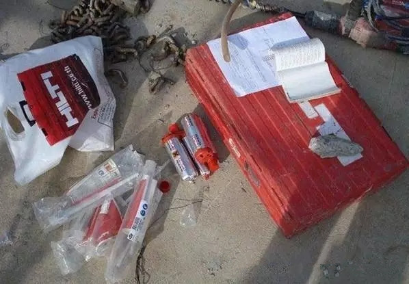(1)將處理好的鋼筋,植入灌注好結(jié)構(gòu)膠的孔內(nèi):