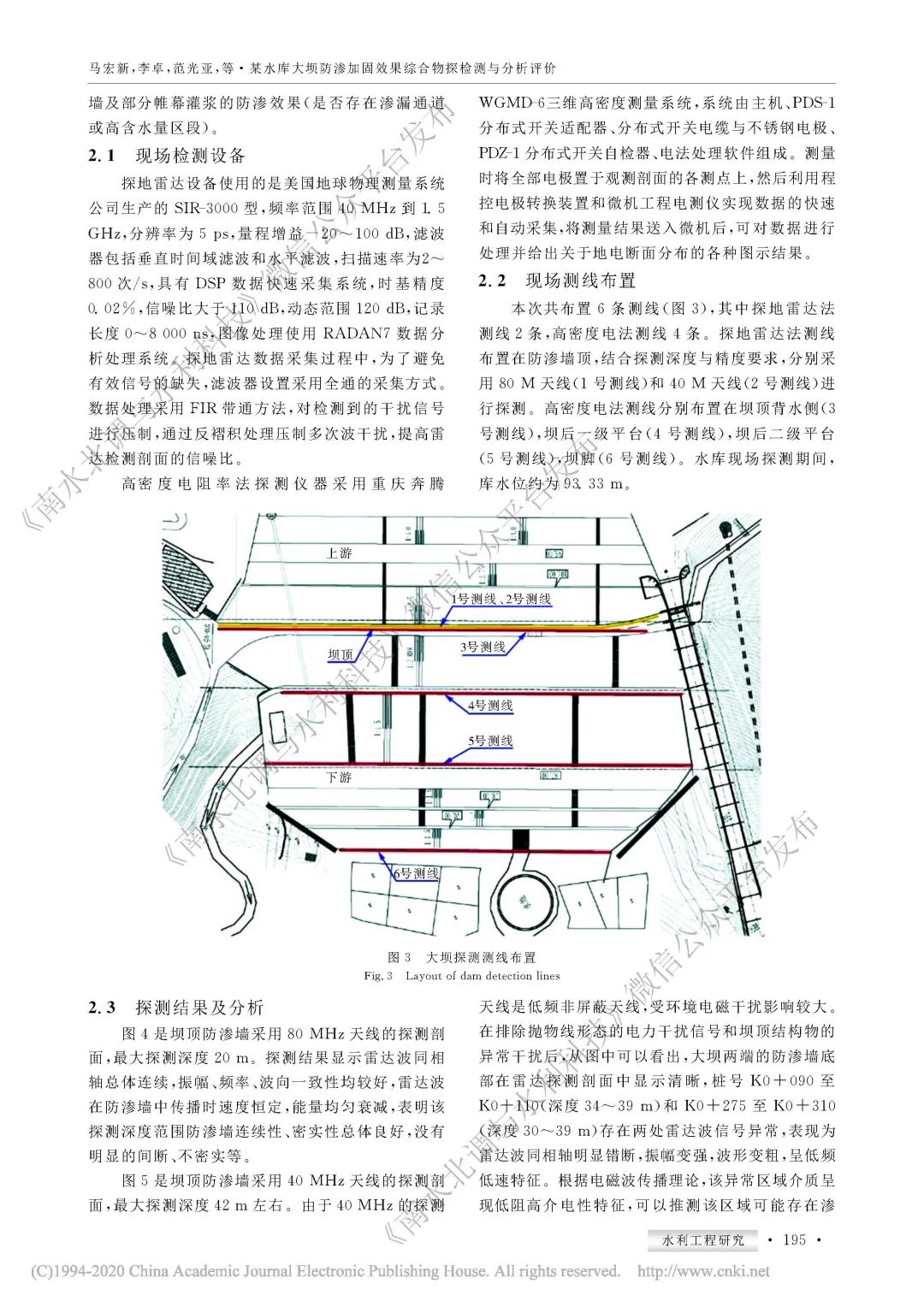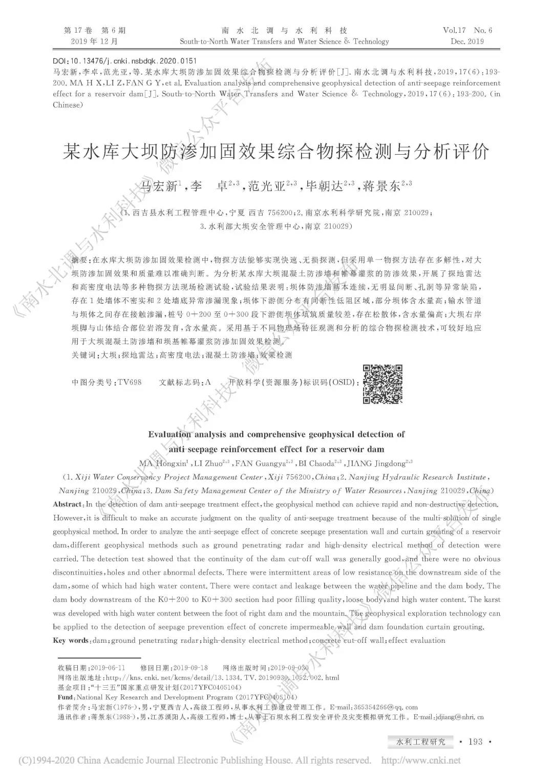馬宏新,李卓,范光亞,等.某水庫大壩防滲加固效果綜合物探檢測與分析評價(jià)[J].南水北調(diào)與水利科技,2019,17(6):193-200.