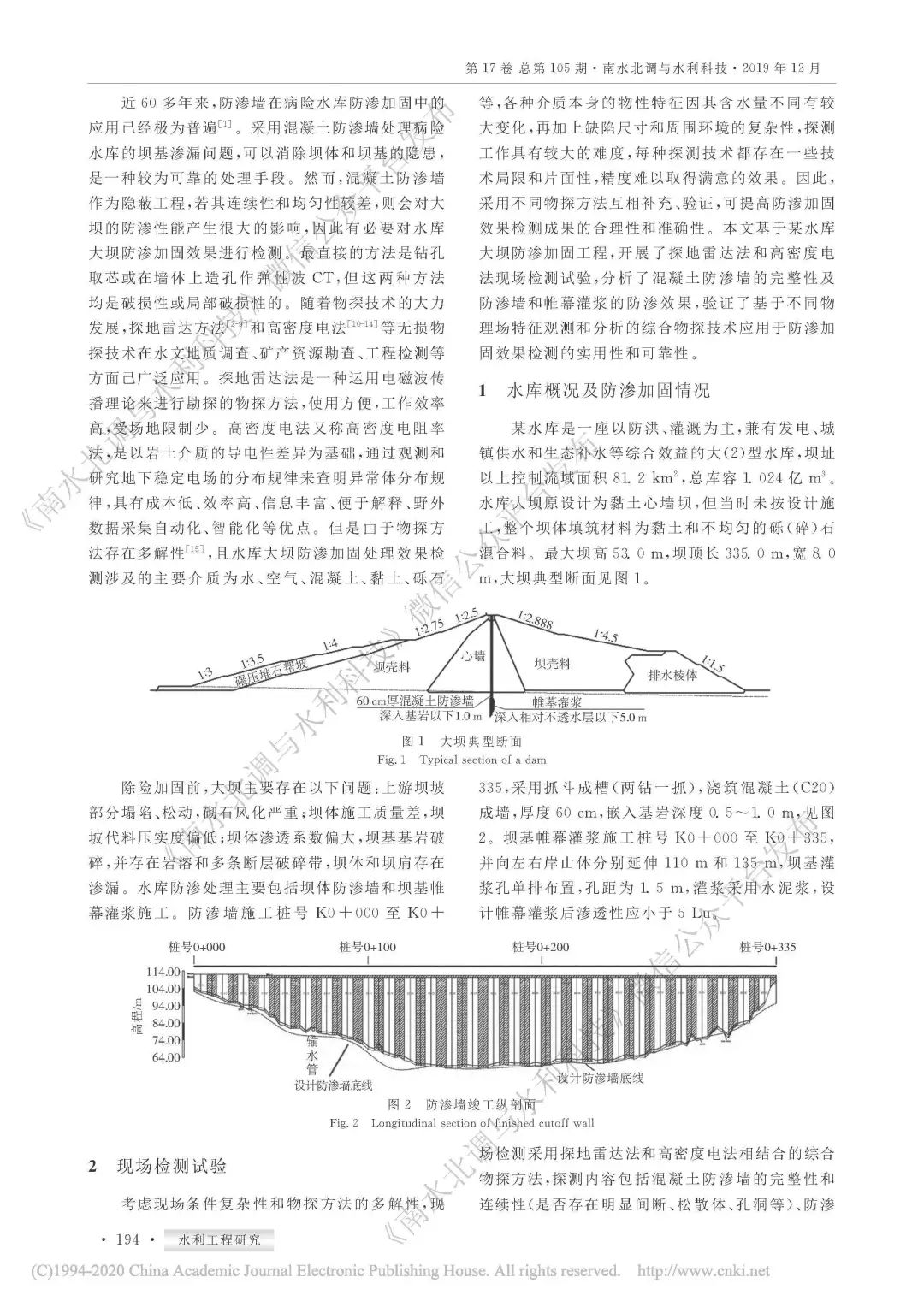 大壩;探地雷達(dá);高密度電法;混凝土防滲墻;效果檢測