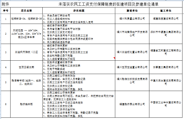 福州市城鄉(xiāng)建設局關于房屋建筑和市政基礎設施工程領域在建項目未按規(guī)定落實農民工工資支付保障制度的通報