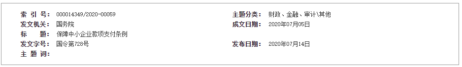 近日,國務(wù)院正式公布了《保障中小企業(yè)款項(xiàng)支付條例》,要求建立長效機(jī)制解決拖欠中小企業(yè)款項(xiàng)問題,自2020年9月1日起施行。
