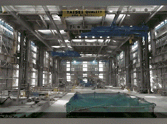 封閉樓頂后他們用天花板起重機逐段分解樓板,接著將墻體拆除。拆除完一層后,再繼續(xù)拆除下一層直至拆完整棟高樓,拆出的建筑垃圾全部用塔吊運至地面裝車運走。
