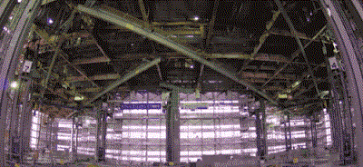 樓頂還有支撐重型設備的地板是用千斤頂頂住的。上層拆好后,千斤頂可以把它們降下來。