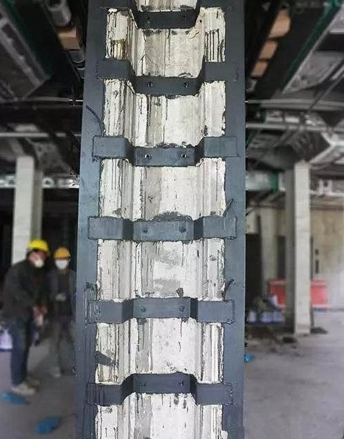廣泛用于混凝土結(jié)構(gòu)的柱梁等建筑結(jié)構(gòu)構(gòu)件。增大截面加固混凝土柱示意圖如下: