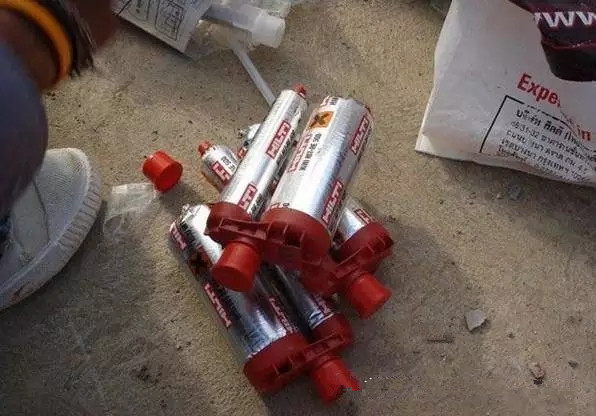 (1)將處理好的鋼筋,植入灌注好結(jié)構(gòu)膠的孔內(nèi):
