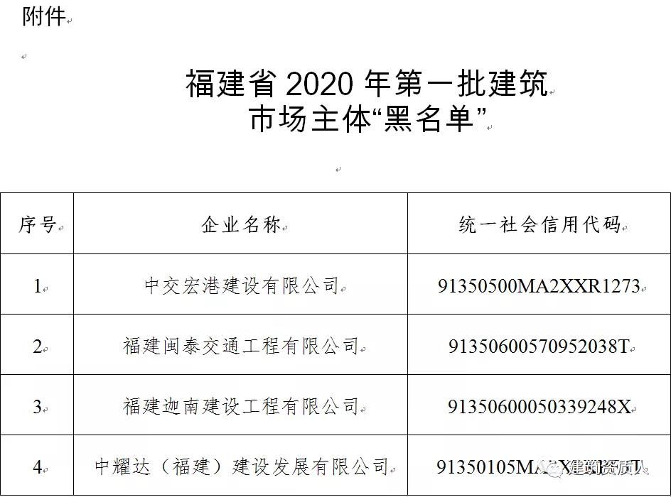 附件:福建省2020年第一批建筑市場主體“黑名單”