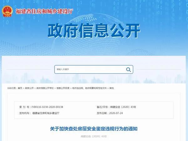 發(fā)布日期:2020-07-28 14:58:11 瀏覽量:784近日,福建省房屋安全隱患排查整治專項行動領導小組辦公室印發(fā)《關(guān)于加快查處房屋安全鑒定違規(guī)行為的通知》,要求各房屋結(jié)構(gòu)安全隱患大排查大整治百日攻堅專項行動牽頭單位加快查處房屋安全鑒定違規(guī)行為。